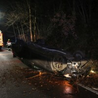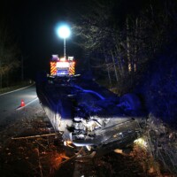 Ein PKW-Lenker kam auf der B130 bei Kilometer 17,8 in Fahrtrichtung Eferding in einer Kurve von der Fahrbahn ab, prallte gegen einen Baum und kam auf dem Dach liegend zum Stillstand.