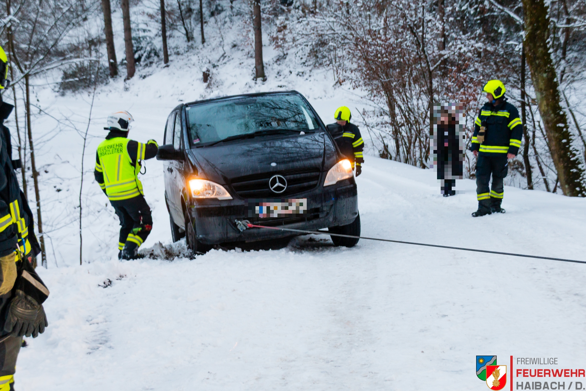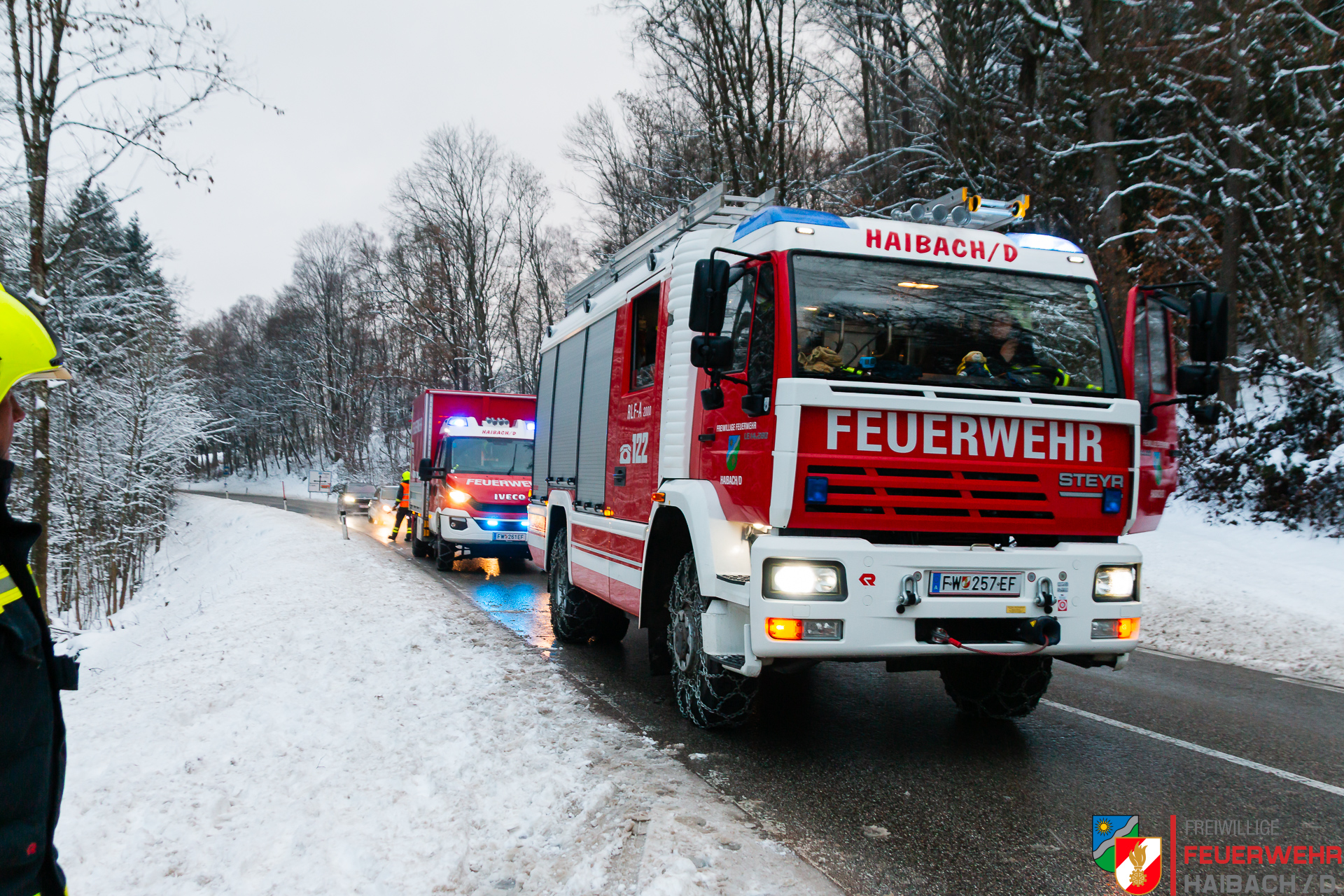 Auf einer Nebenstraße der B130 bei Kilometer 14.2 kam ein Kleintransporter durch die schlechten Fahrbahnverhältnisse ins Rutschen – in weiterer Folge kam dieser vom rechten Fahrbahnrand ab.