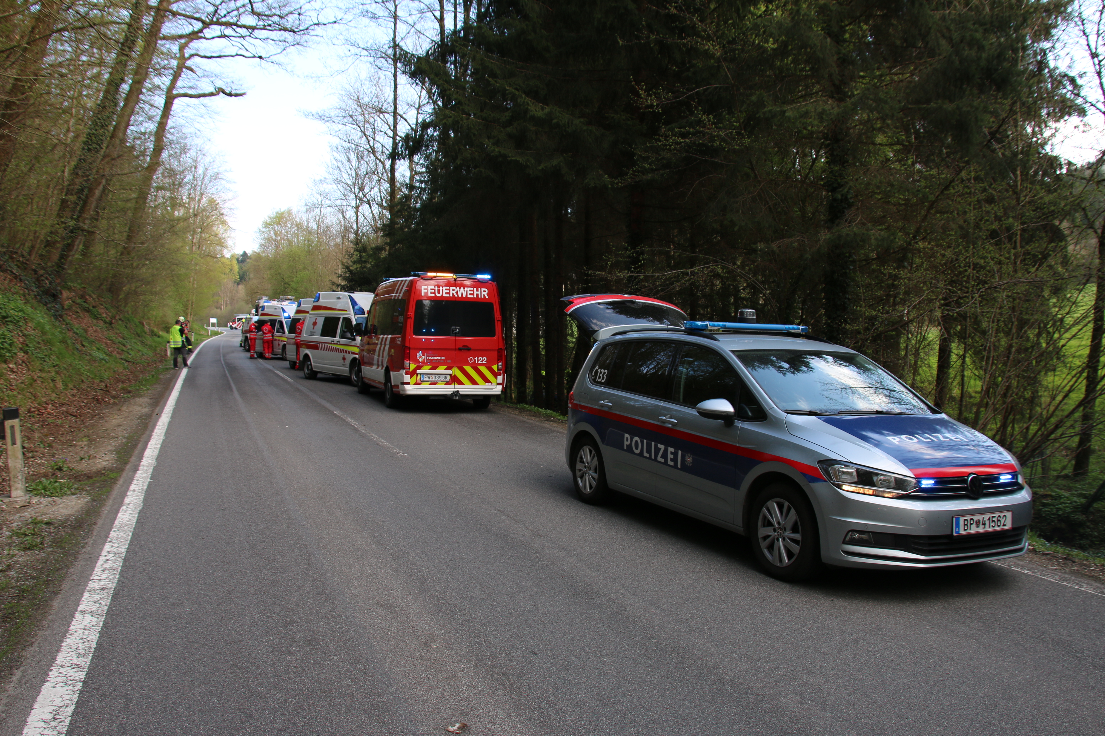 Unser Rüstlöschfahrzeug rückte unverzüglich aus, da aufgrund der Atemschutz-Leistungstest bereits Kameraden im Feuerwehrhaus anwesend waren. Bei Ankunft am Einsatzort war bereits das Kommandofahrzeug St. Agatha vor Ort und leistete Erste Hilfe.